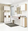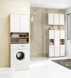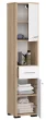 Stolp za kopalnico, ki ga ponuja naša trgovina, je popolna rešitev za zapolnitev praznega prostora v kopalnici, hkrati pa skriva vse predmete, ki to zahtevajo. Poslovite se od grdega natrpanega pralnega stroja, umivalnika ali ogledalnih polic. Ta kopalniška polica bo dodala stil vaši kopalnici. Ker je na voljo v univerzalni barvi - sonoma/bela, se bo stolp popolnoma prilegal kopalnicam, ki so okrašene tako v modernem kot klasičnem slogu. Omara je dopolnjena s srebrenimi ročaji. Vsestranskost tega pohištva dokazuje tudi dejstvo, da so vključeni nastavljivi obešalniki za obešanje in noge za postavitev omare na tla.