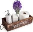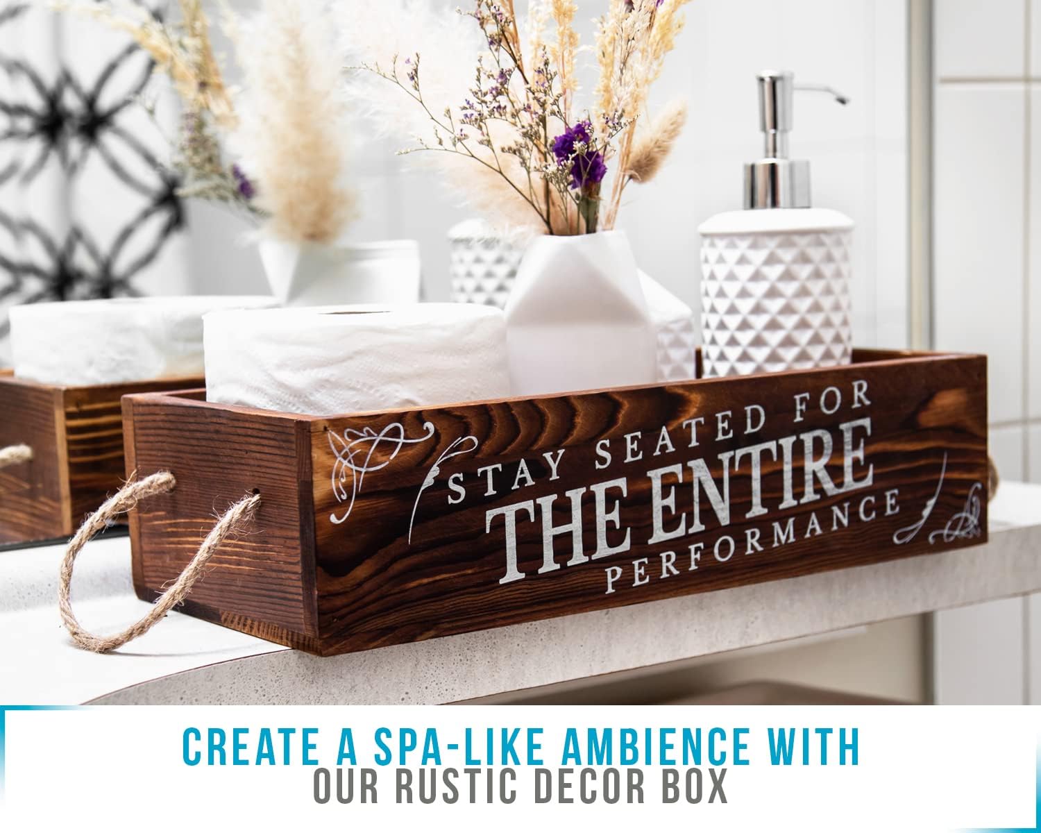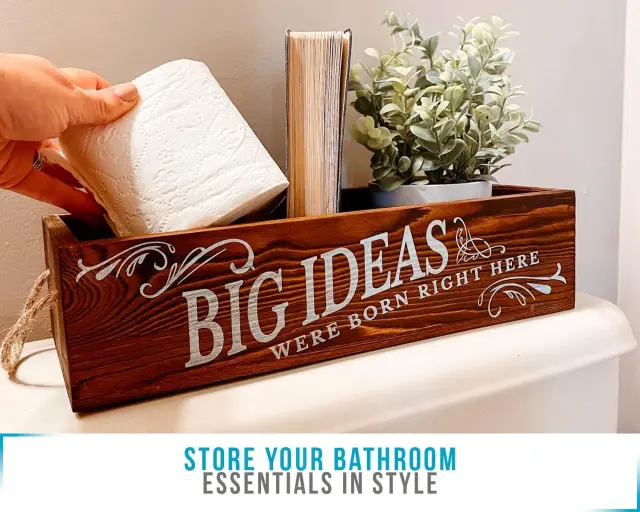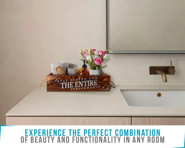 Ta lesen kopalniški pladenj v rustikalno rjavi barvi predstavlja estetsko in praktično rešitev za popestritev vašega kopalniškega prostora. Izdelek je zasnovan tako, da združuje funkcionalno shranjevanje z dekorativnim značajem, ki se odlično poda k podeželskim, tradicionalnim ali vintage slogom opremljanja. Njegova uporaba je vsestranska, saj služi kot priročno odlagališče za toaletni papir, kozmetiko, dišeče sveče ali brisače. Z vključitvijo tega elementa v prostor vnesete toplino naravnega lesa in hkrati ohranite red pri vsakodnevnih opravilih.