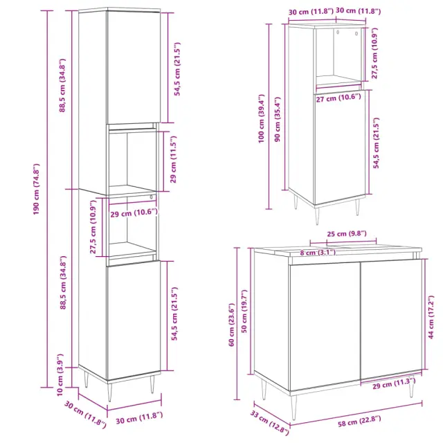 Kopalniški sestavi - Kopalniška garnitura 3-delna sonoma hrast inženirski les