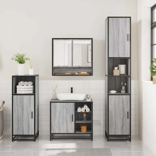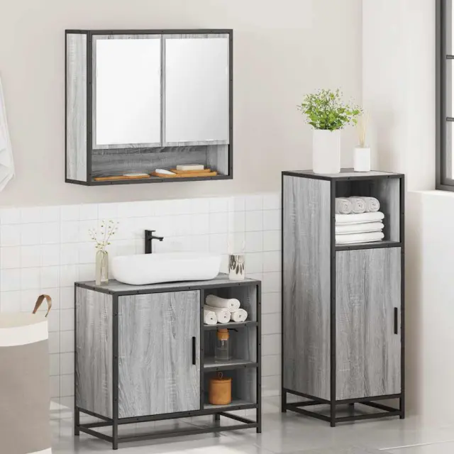 Kopalniški sestavi - Kopalniško pohištvo 3 kosi siva sonoma inženirski les