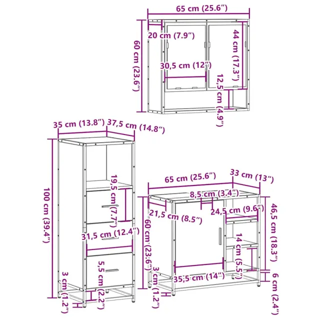 Kopalniški sestavi - Kopalniška garnitura 3-delna rjavi hrast inženirski les