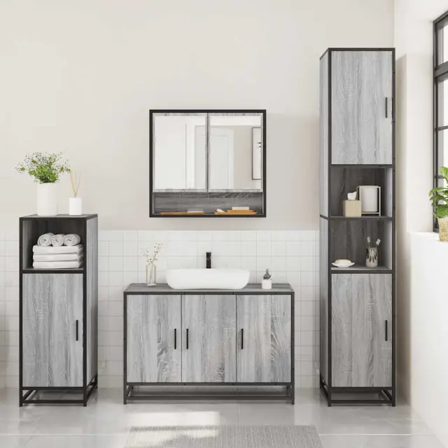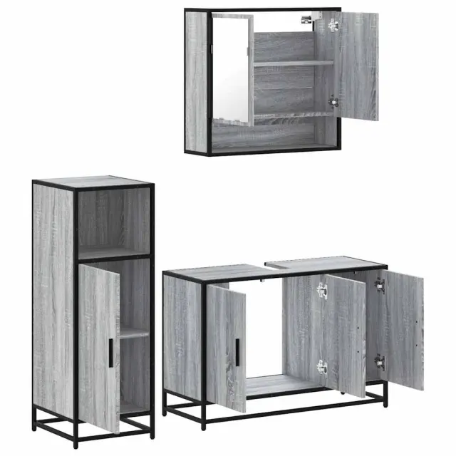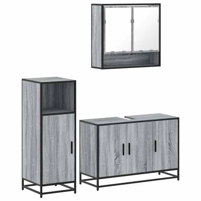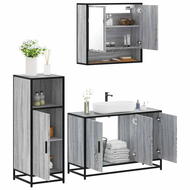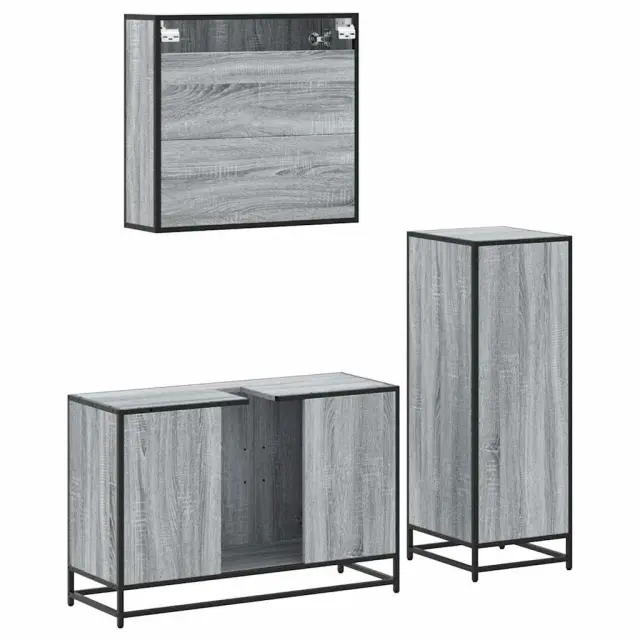 Kopalniški sestavi - Kopalniško pohištvo 3 kosi siva sonoma inženirski les