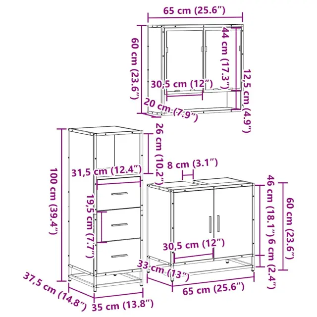 Kopalniški sestavi - Kopalniška garnitura 3-delna sonoma hrast inženirski les