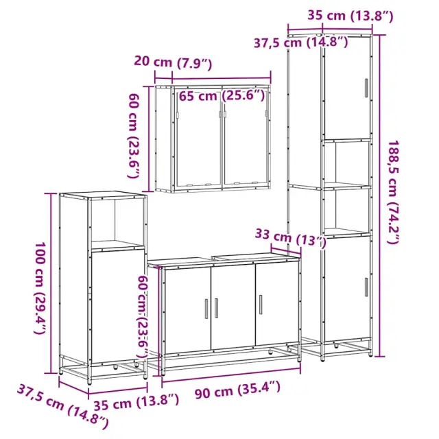 Kopalniški sestavi - Kopalniška garnitura 4-delna sonoma hrast inženirski les