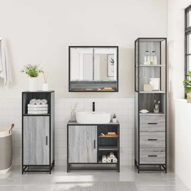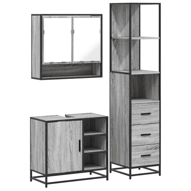Kopalniški sestavi - Kopalniško pohištvo 3 kosi siva sonoma inženirski les