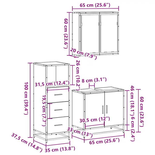 Kopalniški sestavi - Kopalniško pohištvo 3 kosi siva sonoma inženirski les