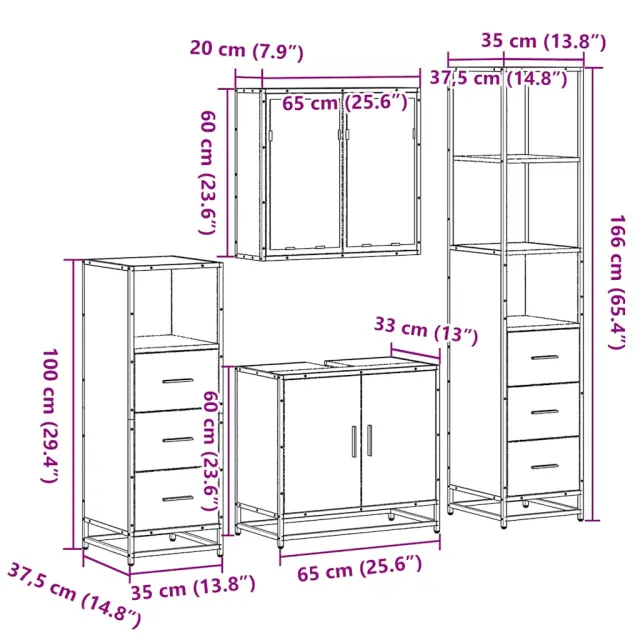 Kopalniški sestavi - Kopalniška garnitura 4-delna rjavi hrast inženirski les