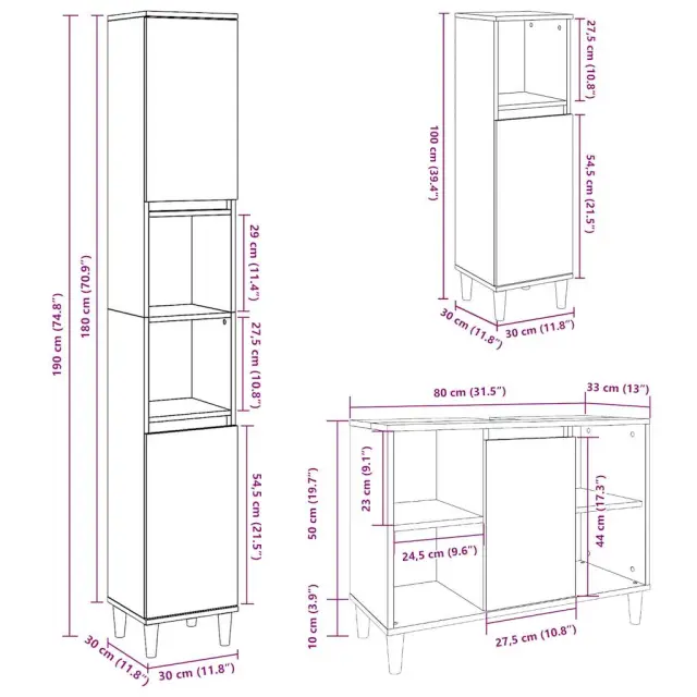 Kopalniški sestavi - Kopalniško pohištvo 3 kosa betonsko sive barve konstruiran les