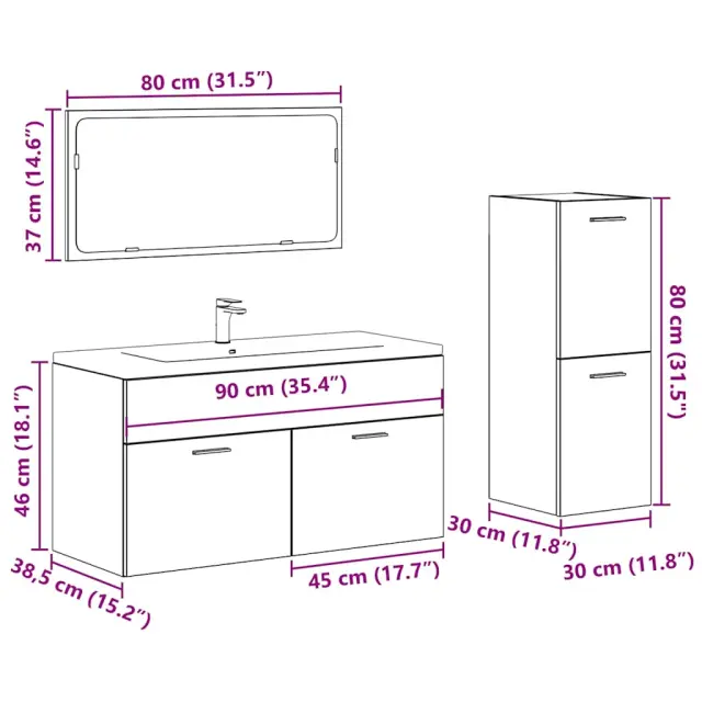 Kopalniški sestavi - Kopalniško pohištvo 3 kosa betonsko sive barve konstruiran les