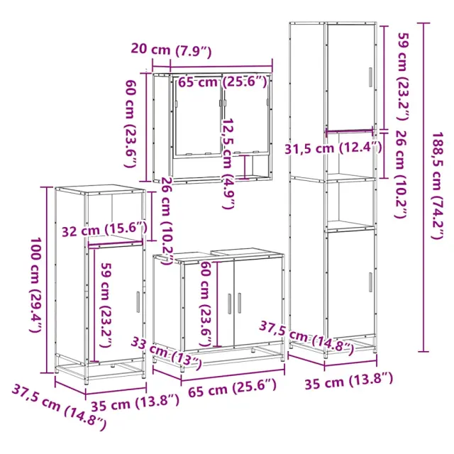Kopalniški sestavi - Kopalniška garnitura 4-delna rjavi hrast inženirski les