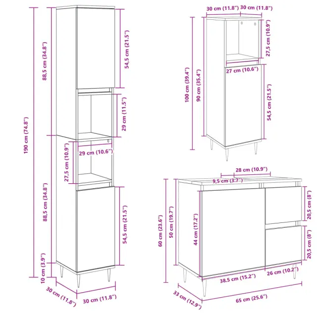 Kopalniški sestavi - Kopalniška garnitura 3-delna sonoma hrast inženirski les