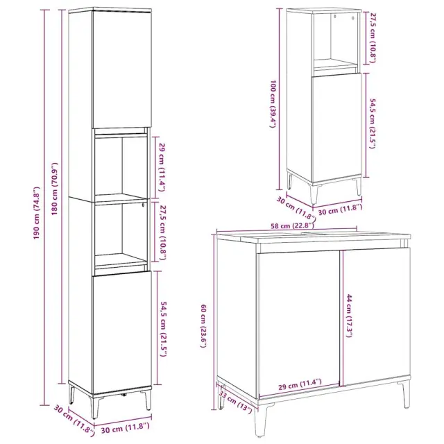 Kopalniški sestavi - Kopalniško pohištvo 3 kosa betonsko sive barve konstruiran les