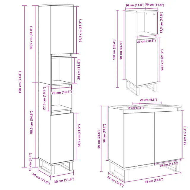 Kopalniški sestavi - Kopalniška garnitura 3-delna sonoma hrast inženirski les