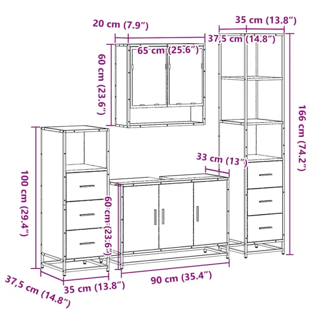 Kopalniški sestavi - Kopalniška garnitura 4-delna rjavi hrast inženirski les