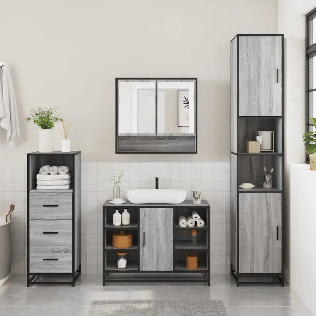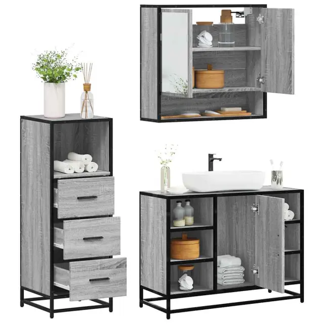 Kopalniški sestavi - Kopalniško pohištvo 3 kosi siva sonoma inženirski les