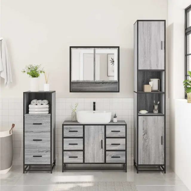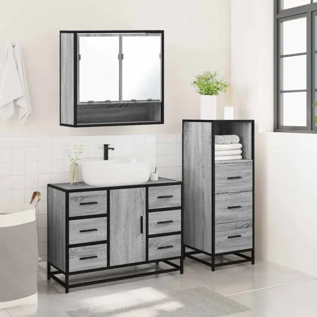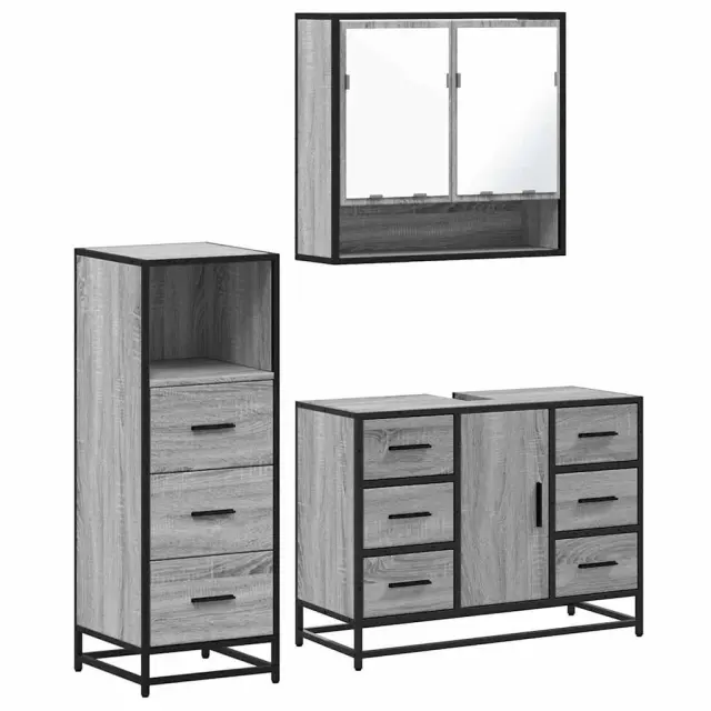 Kopalniški sestavi - Kopalniško pohištvo 3 kosi siva sonoma inženirski les