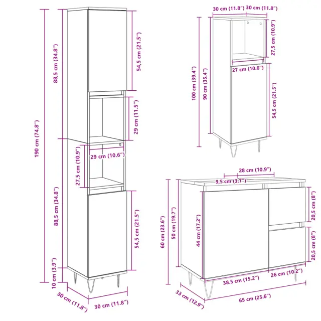 Kopalniški sestavi - Kopalniška garnitura 3-delna sonoma hrast inženirski les