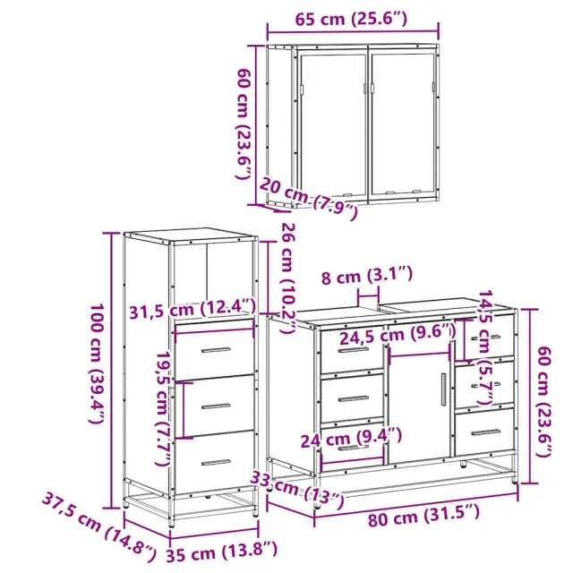 Kopalniški sestavi - Kopalniška garnitura 3-delna rjavi hrast inženirski les