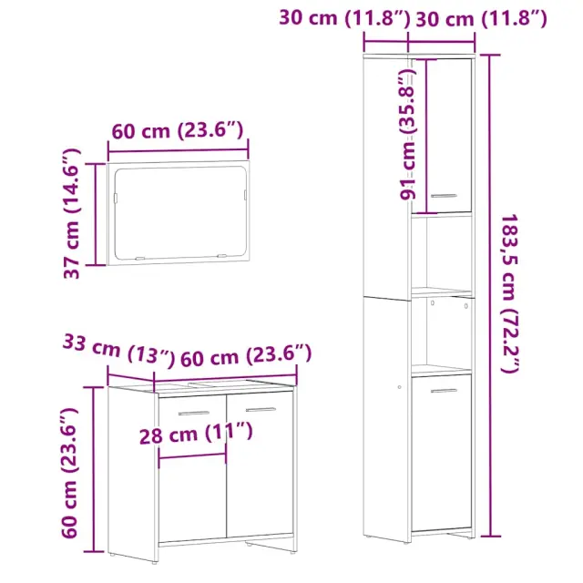 Kopalniško pohištvo - Kopalniški sestavi 3 kosa starinski les inženirski les