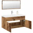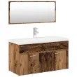 Ta komplet kopalniškega pohištva ima veliko prostora za shranjevanje ter je izvrsten dodatek za vašo kopalnico, saj ji bo dodal urejen in osupljiv videz! Trden material: Omarica pod umivalnikom je izdelana iz inženirskega lesa, ki je izjemne kakovosti z gladko površino, odlikujejo pa ga tudi trdnost, stabilnost in odpornost na vlago.Veliko prostora za shranjevanje: Kopalniški umivalnik ponuja veliko prostora za shranjevanje predmetov v kopalnici.Praktičen dizajn: Zgornji del te kopalniške omarice je idealen za namestitev umivalnika.Funkcija za namestitev na steno: Kopalniško omarico je mogoče namestiti na steno za pridobivanje dodatnega prostora za shranjevanje. Tako lahko kar najbolje izkoristite svojo talno površino in ohranite urejen prostor.Funkcija prelivanja: Odprtina za prelivanje je namenjena odtekanju vode, če se prenapolni. Dobro je vedeti:Vijak(i) in čep(i) za notranjost stene ni(so) priložen(i). Poiščite in uporabite vijak(e) in čep(e), primerne za vaše stene. Če ste negotovi, poiščite strokovni nasvet. Pozorno preberite in sledite vsakemu koraku v navodilih.Priložena sta armatura in potisni odtok s funkcijo za prelivanje.Pipa ima cev za toplo in hladno vodo, če potrebujete toplo vodo, je treba priključiti grelnik vode.Omarica za umivalnik:Barva: Starinski lesMaterial: Inženirski lesDimenzije: 90 x 38,5 x 46 cm (Š x G x V)Vgradni umivalnik:Barva: BelaMaterial: KeramikaDimenzije umivalnika: 91 x 39 x 18 cm (D x Š x V)Debelina keramičnega roba: 4 cmPremer odprtine za odtok: 4,5 cmS pretočnim kanalomS pipoPotisni odtok s funkcijo prelivanjaOgledalo:Barva: Starinski lesMaterial: Inženirski les, akrilDimenzije: 90 x 1,5 x 37 cm (Š x G x V)Potrebno sestavljanje: DaPaket vsebuje:1 x Omarica za umivalnik1 x Vgradni umivalnik z armaturo1 x Ogledalo Otroci morajo biti pod nadzorom, da se prepričate, da se ne igrajo z napravo. Otroci naj bodo stran od območja montaže. Pozor: Pred uporabo natančno preberite navodila in jih shranite za nadaljnje sklice.