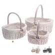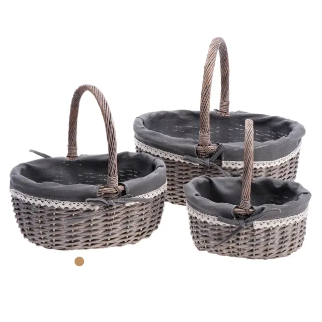 Košara z ročajem je pletena iz naravnih lesenih vej v čvrsto in vzdržljivo strukturo. V notranjosti je obdana z odstranljivim blagom, ki ji daje dodatno zaščito in estetski čar. Zaradi ročaja je prenašanje te košare izjemno enostavno. Idealna je za sadje, sladkarij in ostale drobnarije ter za prenašanje velikonočnih dobrot. Na voljo je v več barvah. | SESTAVA: 70% bombaž in 30% poliester | VZDRŽEVANJE: Blago operite ročno. Sušenje v sušilnem stroju ni dovoljeno. Likanje ni dovoljeno. Beljenje ni dovoljeno. Kemično čiščenje ni dovoljeno.