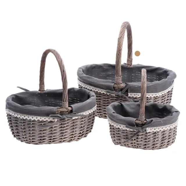 Košara z ročajem je pletena iz naravnih lesenih vej v čvrsto in vzdržljivo strukturo. V notranjosti je obdana z odstranljivim blagom, ki ji daje dodatno zaščito in estetski čar. Zaradi ročaja je prenašanje te košare izjemno enostavno. Idealna je za sadje, sladkarij in ostale drobnarije ter za prenašanje velikonočnih dobrot. Na voljo je v več barvah. | SESTAVA: 70% bombaž in 30% poliester | VZDRŽEVANJE: Blago operite ročno. Sušenje v sušilnem stroju ni dovoljeno. Likanje ni dovoljeno. Beljenje ni dovoljeno. Kemično čiščenje ni dovoljeno.