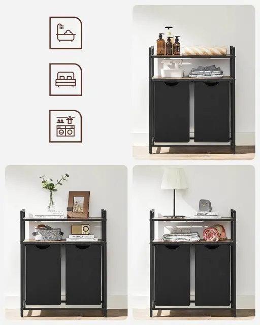 VASAGLE košara za perilo s 2 predelki, črna, BLH211B01