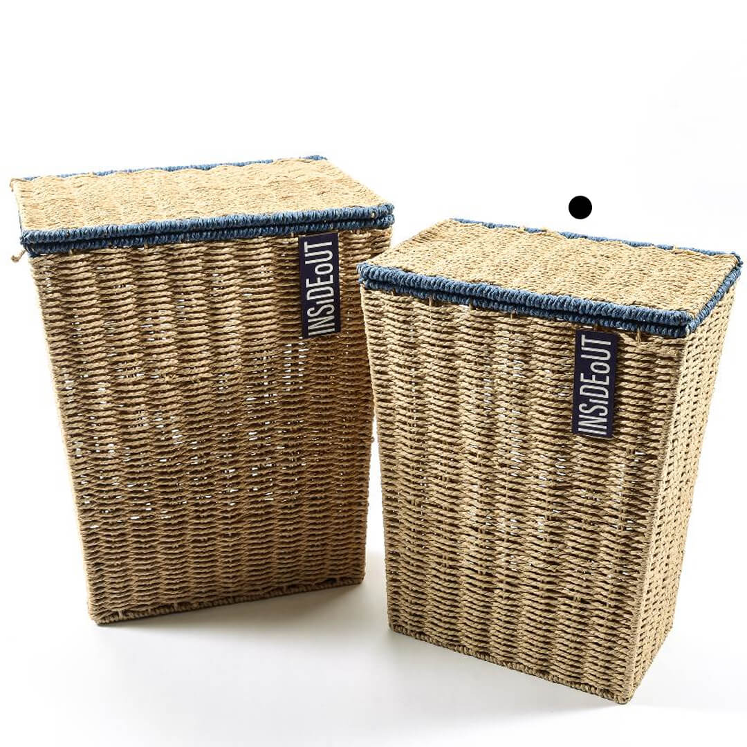 Košara za perilo Insideout je čudovita kombinacija naravnega videza in moderne funkcionalnosti. Njeno stabilno kovinsko ogrodje je prepleteno z rjavo rafijo, kar ji daje topel, ročno izdelan videz in občutek naravnosti. Modra obroba in pokrov poskrbita za svež kontrast ter dodatno estetsko dovršenost. Košara je praktična za vsakodnevno uporabo, saj pokrov diskretno skrije vsebino, hkrati pa s svojim elegantnim videzom lepo dopolni kopalnico, spalnico ali garderobo. Notranjost je prostorna in dizajn dovolj zračen, da perilo ostane sveže. Košara je idealna izbira za vse, ki prisegajo na naravne tone in urejen dom.