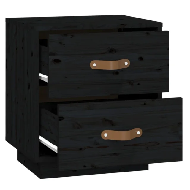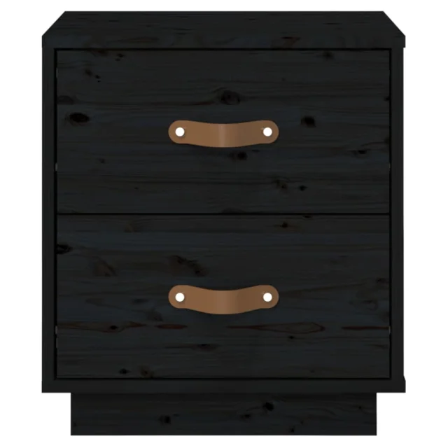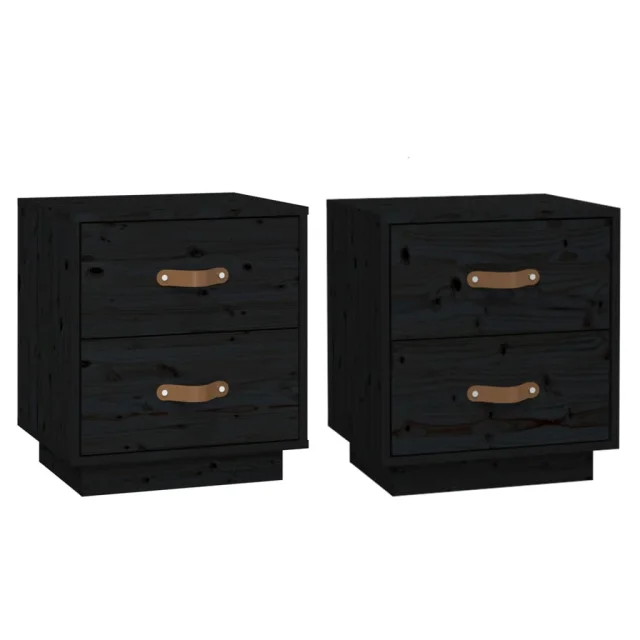 2 kose Nočne omarice - Nočne mize črna 40x34x45 cm trdna borovina
