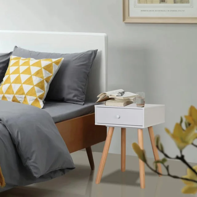 2 kose Nočne omarice - Nočne mize masivna borovina 40x30x61 cm bele barve