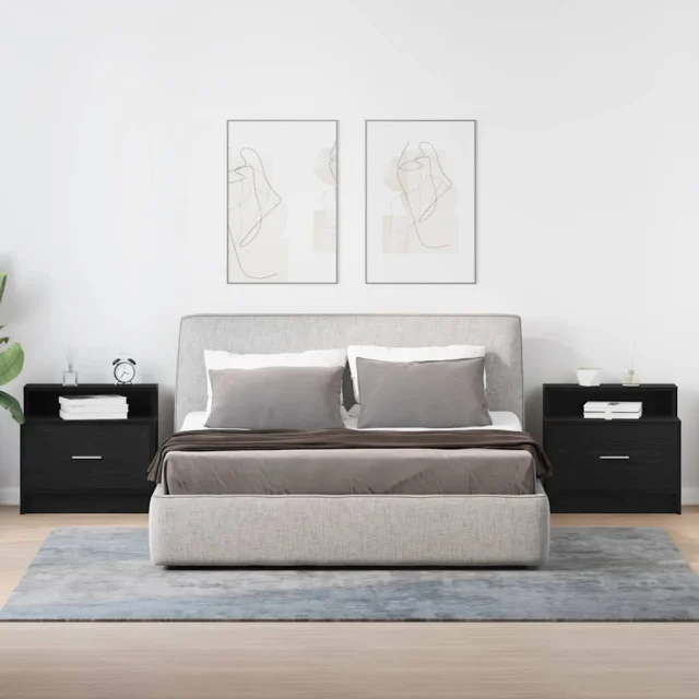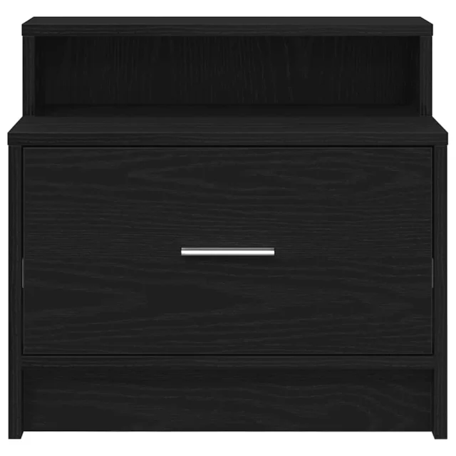 2 kose Nočne omarice - Nočne mize s predalom črna hrast 51x31x47 cm