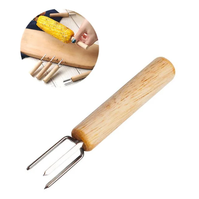 10 kosov Vilice za žar za koruzo iz nerjavečega jekla, pečena koruza, leseni ročaj, nabodala na prostem, orodje za koruzo