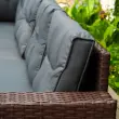 Praktičnost se sreča s prefinjenostjo z nepremočljivimi blazinami, ki imajo odstranljive in pralne prevleke, kar zagotavlja, da je vaš komplet vedno videti kot nov. Priložena visokokakovostna dežna prevleka zagotavlja celoletno zaščito vaše sedežne garniture in odpravlja potrebo po prenašanju pohištva v prostor v mokrih in deževnih razmerah. Ta kotna jedilna garnitura iz ratana je elegantna možnost, ki ne zahteva vzdrževanja in spremeni vaš vrt v osebni raj, zaradi česar vam bodo zavidali vsi vaši prijatelji in sosedje.