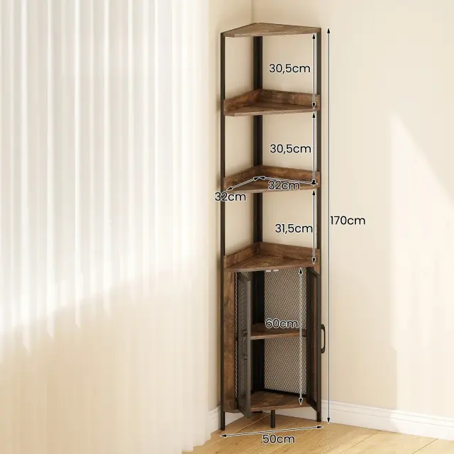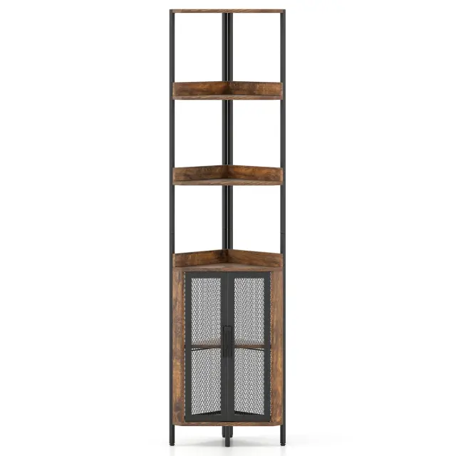 Velik prostor za shranjevanje in razstavljanje: Ta vogalna knjižna omara ima 4 odprte police in omaro s kovinskimi mrežastimi vrati, ki ponujajo več načinov za organizacijo knjig, okraskov ali kuhinjskih pripomočkov. Zaradi 3 nastavljivih polic z razmikom 6,4 cm lahko omarico prilagodite svojim potrebam.