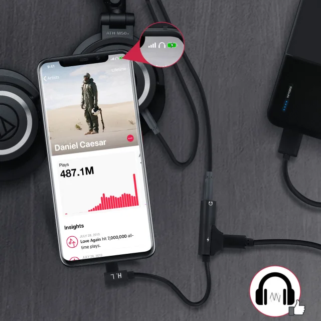 Kotni avdio in polnilni adapter iPhone Lightning na 3,5 mm vticnico in Lightning, HL-092 - crn