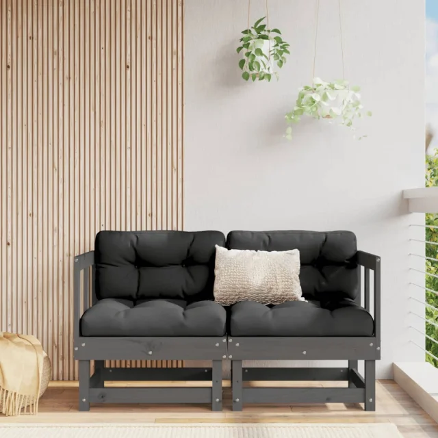Kotni kavč - Sofa - Kanape z blazinami 2 kosa siva trdna borovina