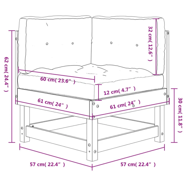 • Dimenzije blazine za sedež: 60 x 60 x 12 cm (D x Š x D)