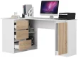 Kotna miza B20 155 cm levo / sonomat je izdelana iz laminirane plošče v beli barvi podjetja Kronospan. Material je odporen na obrabo in ima mat površino. Je idealna izbira tako za študij kot za delo na daljavo. Praktične predale in police, ki se nahajajo na levi strani, ter omarica na desni omogočajo enostavno shranjevanje dokumentov, pisalnih potrebščin ali drugih predmetov, ki jih uporabljamo med delom. Miza se popolnoma prilega prostoru - lahko jo postavimo v kot sobe, ne da bi zavzela preveč prostora. Barvna shema pohištva, ki združuje belo in svetlo les, jo bo naredila za nevtralen dodatek v prostoru.