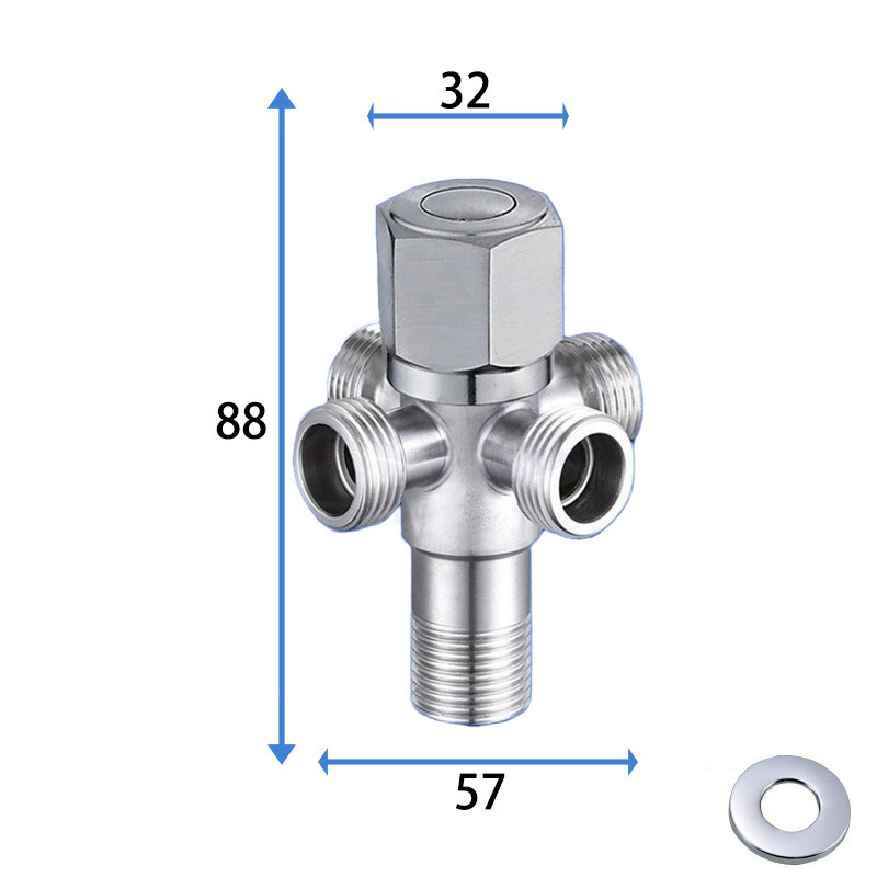 Odpornost proti koroziji: Ta kotni ventil, izdelan iz vrhunskega nerjavečega jekla 304, nudi izjemno odpornost proti rji in koroziji, kar zagotavlja dolgo življenjsko dobo in zanesljivo delovanje tudi v vlažnih okoljih. Robustna konstrukcija iz nerjavečega jekla zagotavlja, da ventil sčasoma ohrani svojo celovitost in videz, kar zagotavlja stroškovno učinkovito in zanesljivo rešitev za vaše vodovodne potrebe. Zaradi odpornosti proti koroziji je idealen za uporabo z različnimi vrstami in temperaturami vode.