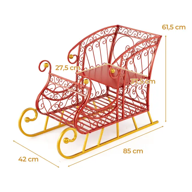 Kovinska košara za Božičkove sani 2-stopenjsko shranjevanje daril sani praznično dekorativni voziček za sani rdeča