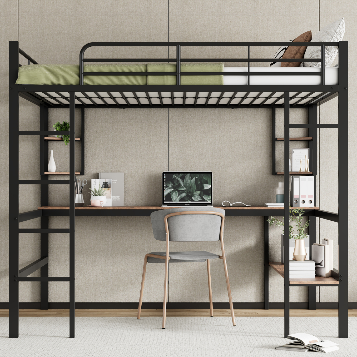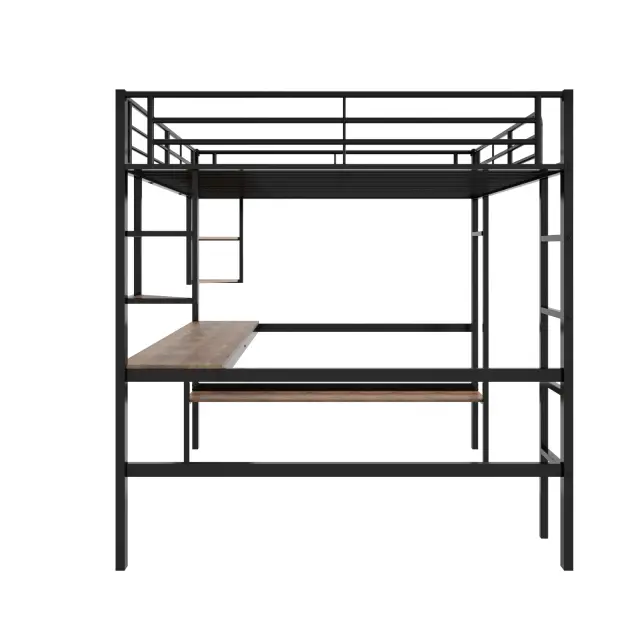 Kovinska podstrešna postelja 140x200 cm z mizo in policami, črna