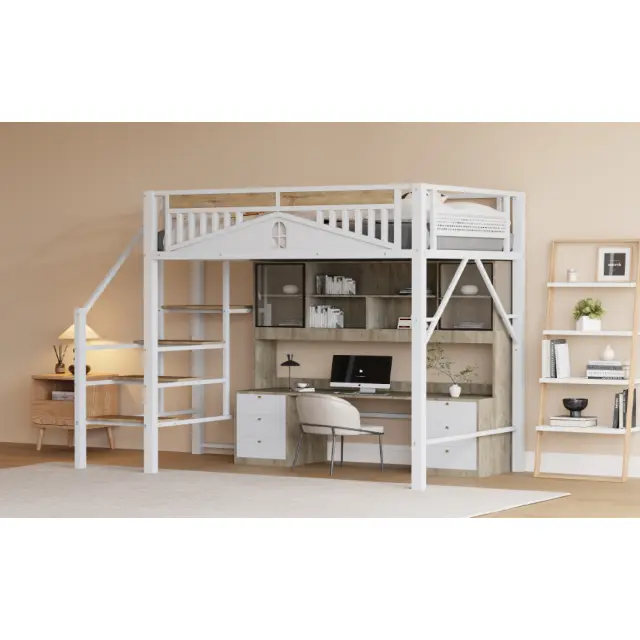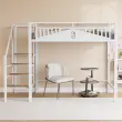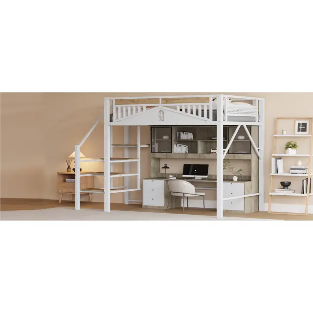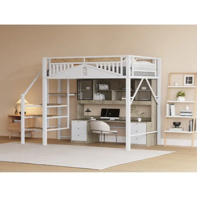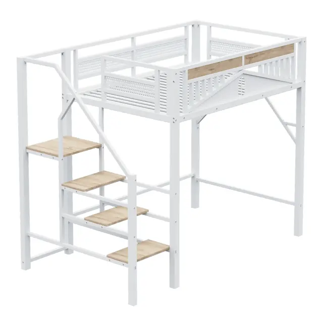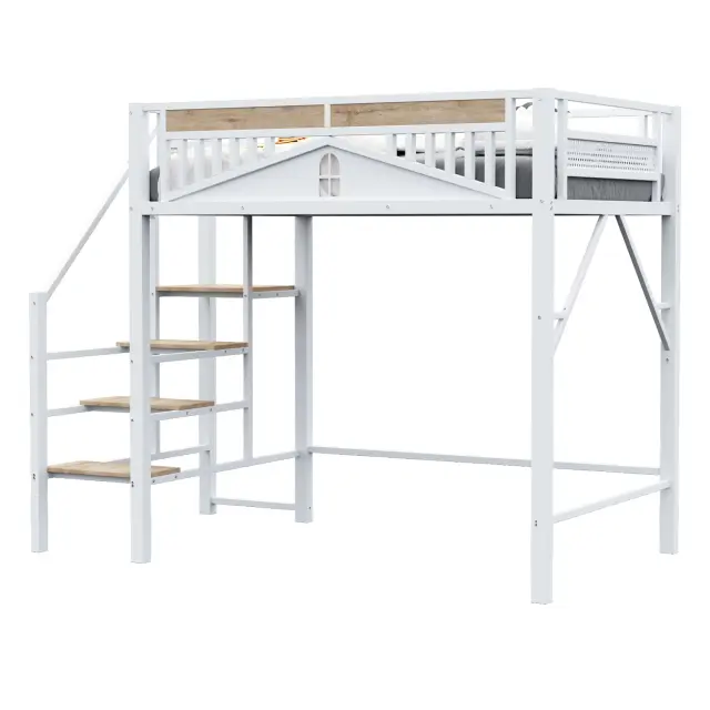 Ta elegantna kovinska podstrešna postelja dimenzij 140 x 200 cm, na voljo v beli ali črni barvi, združuje varnost, funkcionalnost in estetiko. Ima trden kovinski okvir, varnostne ograje, lesene stopnice in edinstveno obliko okna. Dvignjena zasnova zagotavlja veliko prostora spodaj za različne namene uporabe.