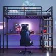 Kovinska podstrešna postelja 90x200 cm z mizo in policami, črna