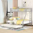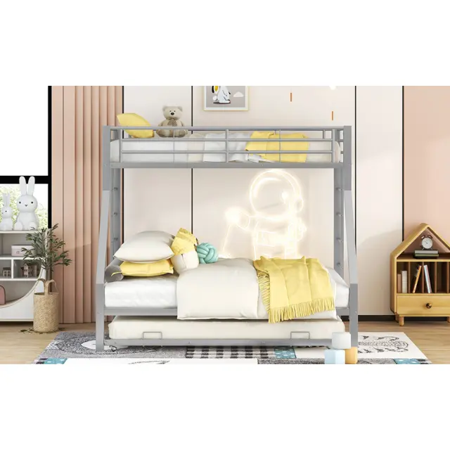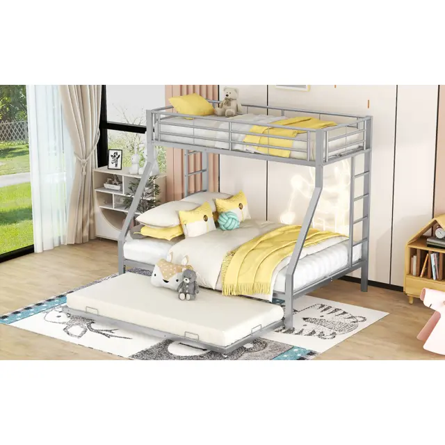 Kovinska pogradna postelja z izvlečnim dnom in lestvijo - srebrna, enostavna montaža, 90(140)x200cm