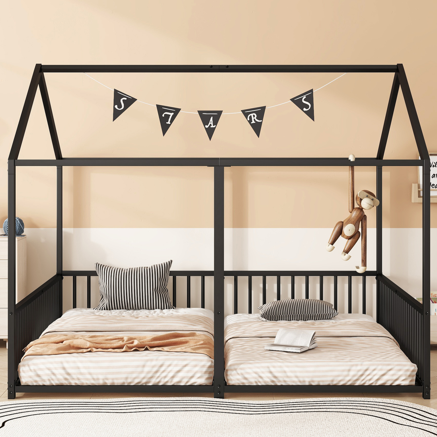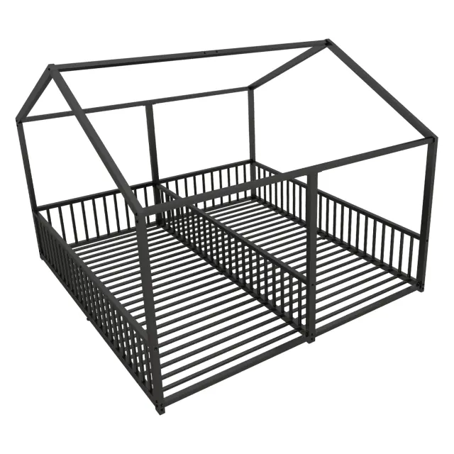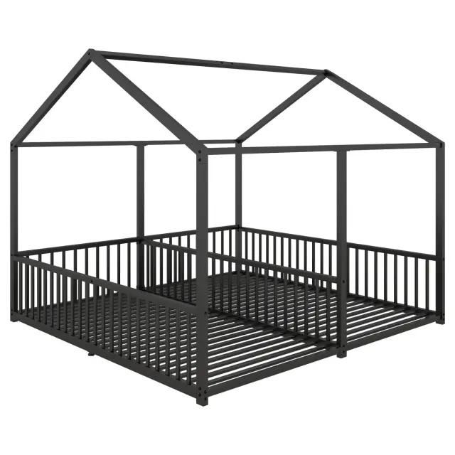 Kovinska postelja, otroška postelja, 90x200cm, model hiše, železno ogrodje, črna