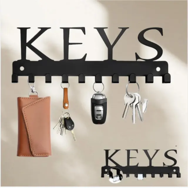Stilski dom dekor: Ta kovinska stojala za ključe ne le ponuja funkcionalno rešitev za shranjevanje ključev, ampak tudi služi kot stilski element domače dekoracije. Njegova elegantna črna železna zasnova dopolnjuje vsak slog notranjosti, dodaja pridih elegance vašemu vhodu, kuhinji ali pisarni. Napis 'KEYS' je privlačen in dodaja prijetno vzdušje vašemu prostoru. Poskrbite, da bodo vaši ključi organizirani in izboljšajte estetiko svojega doma s tem dekorativnim držalom za ključe, ki je idealno za pritrditev blizu vrat ali v kuhinji za enostaven dostop in okolje brez nereda. Njegova preprosta, a moderna zasnova zagotavlja, da se neopazno integrira v vsak prostor.