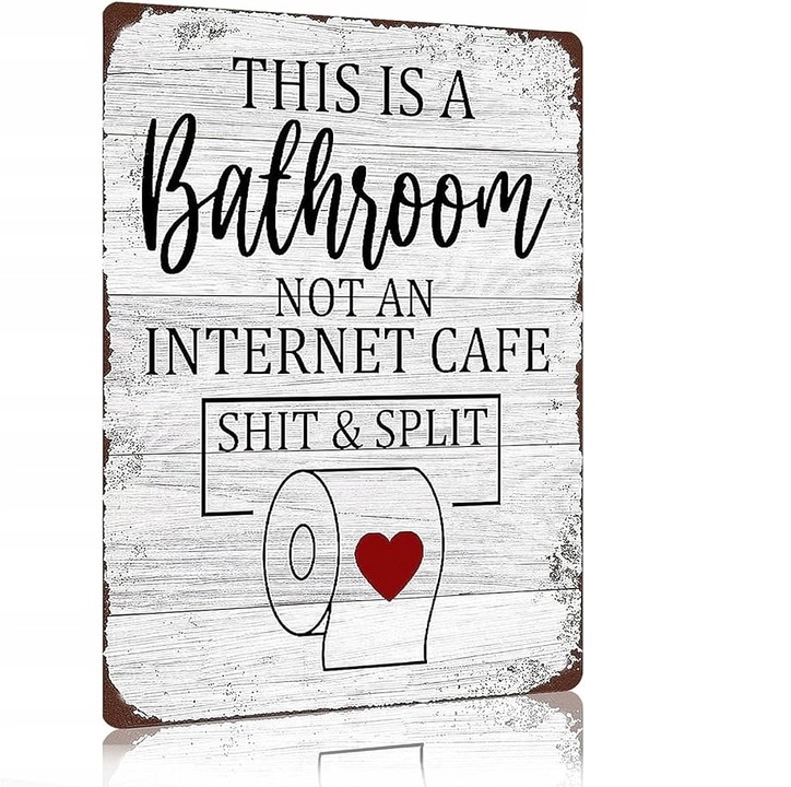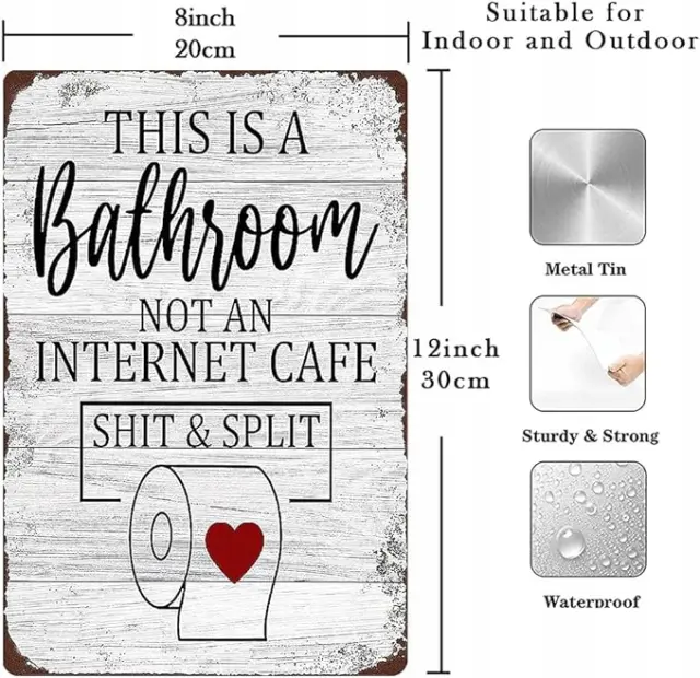 Zabavna kovinska tabla za kopalnico je odličen način za vnos humorja in osebnega sloga v vaš interier. Zaradi kakovostne izdelave in preproste namestitve bo ta stenski dodatek dolgo krasil vaš dom ter navduševal vaše goste. Izberite svojo novo dekoracijo še danes in dodajte kanček veselja v svojo kopalnico s tem unikatnim kovinskim izdelkom.