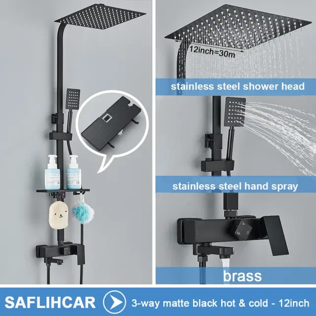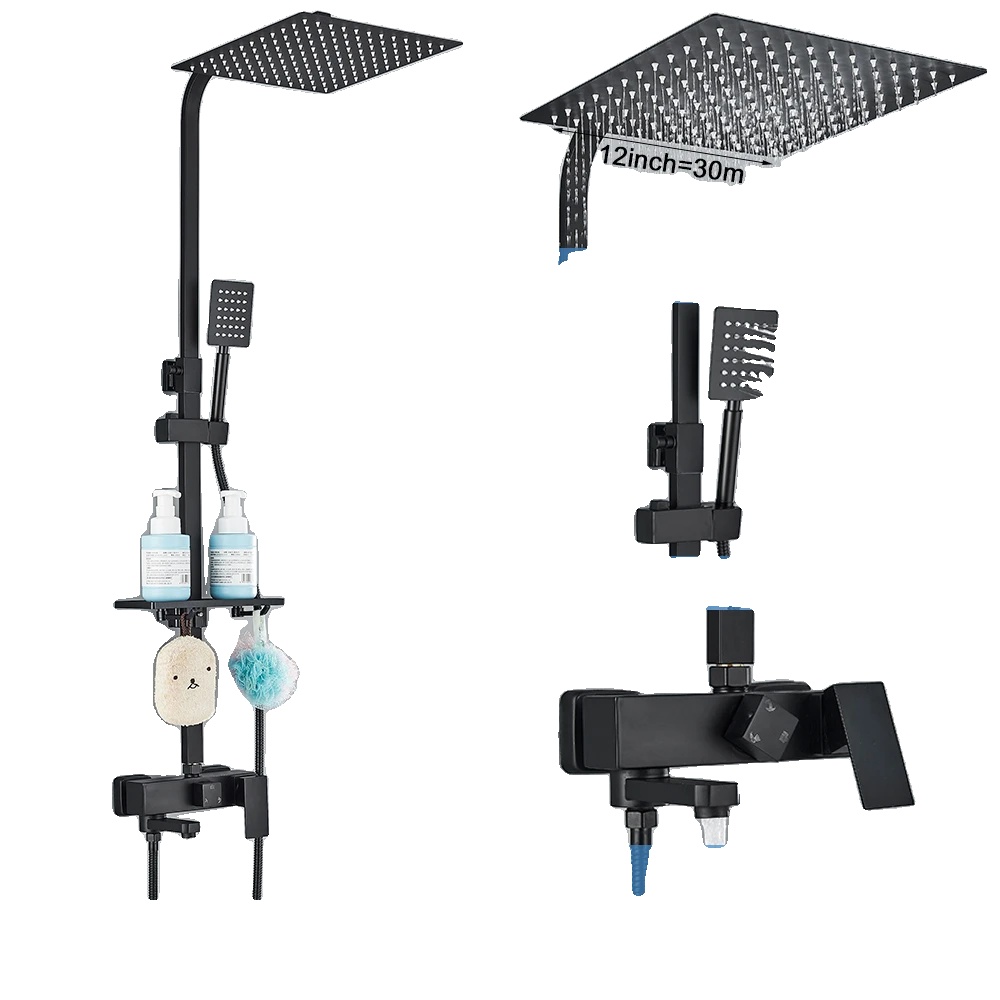 Kovinska tuš pipa, sodoben stil, termostatska tehnologija, mat črna 3-