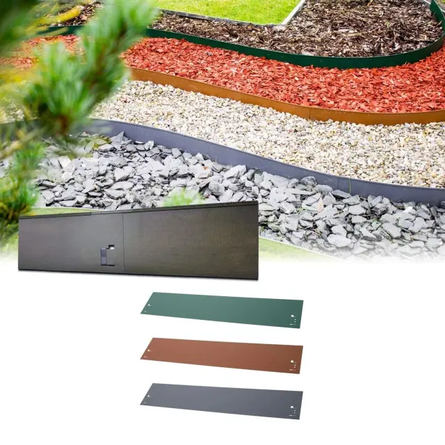 V primerjavi s PVC robovi, ki hitro propadejo, ali kamnitimi, ki zahtevajo veliko dela, so naše kovinske robove optimalna izbira po ceni, trajanju in enostavnosti. Barva rjava se lepo zliva z naravo.