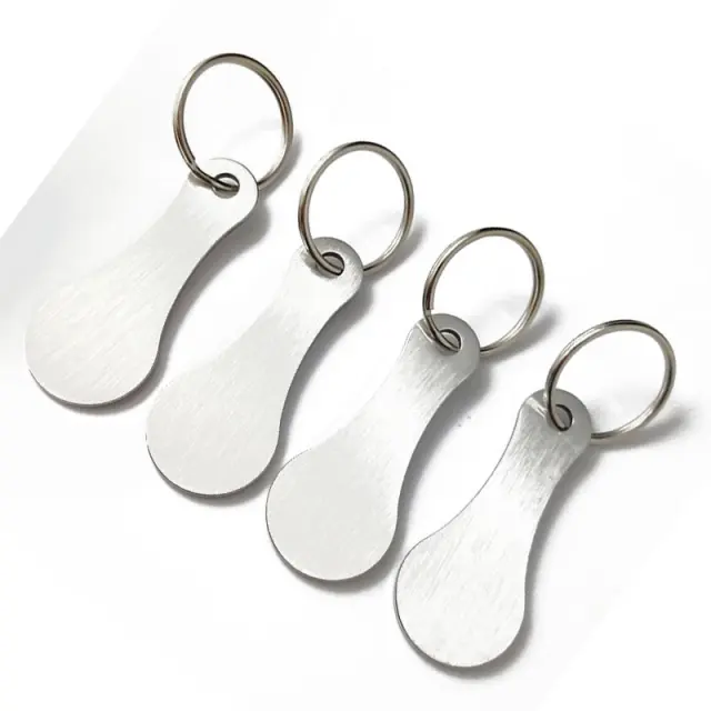 Priročno in praktično: s tem kompletom štirih obeskov za ključe imejte žetone v nakupovalnem vozičku organizirane in vedno pri roki. Pri nakupovanju se izogibajte iskanju razsutih kovancev ali žetonov.